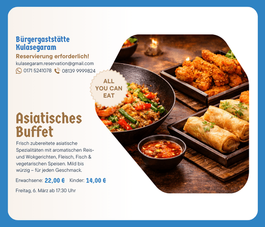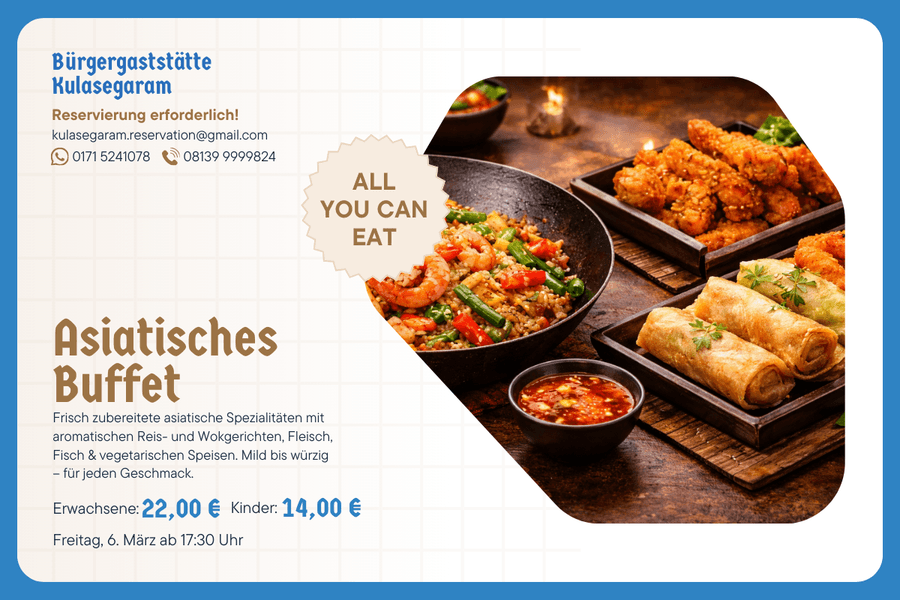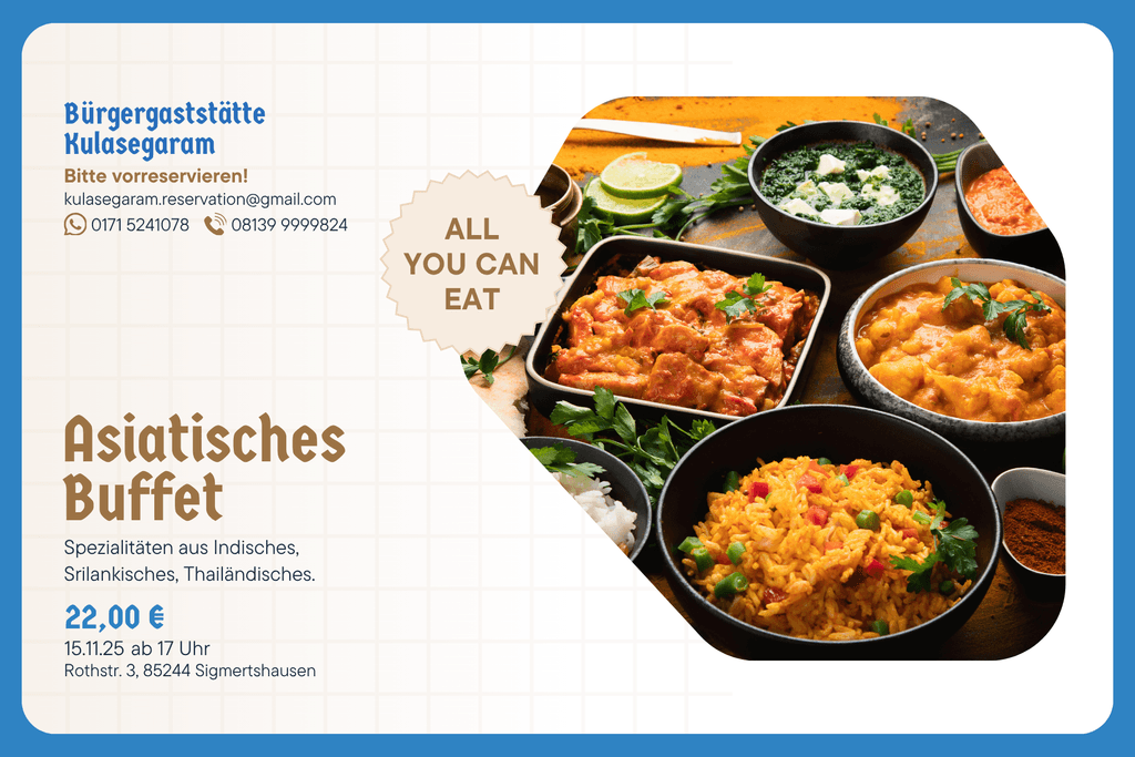 Die Bürgergaststätte Kulasegaram ist ein Ort, an dem kulinarische Grenzen verschwimmen. Wir vereinen die herzhaften Aromen Bayerns mit der exotischen Würze Indiens und Tamilen. Unsere Gerichte sind eine Hommage an die Vielfalt und die Kunst des guten Geschmacks.